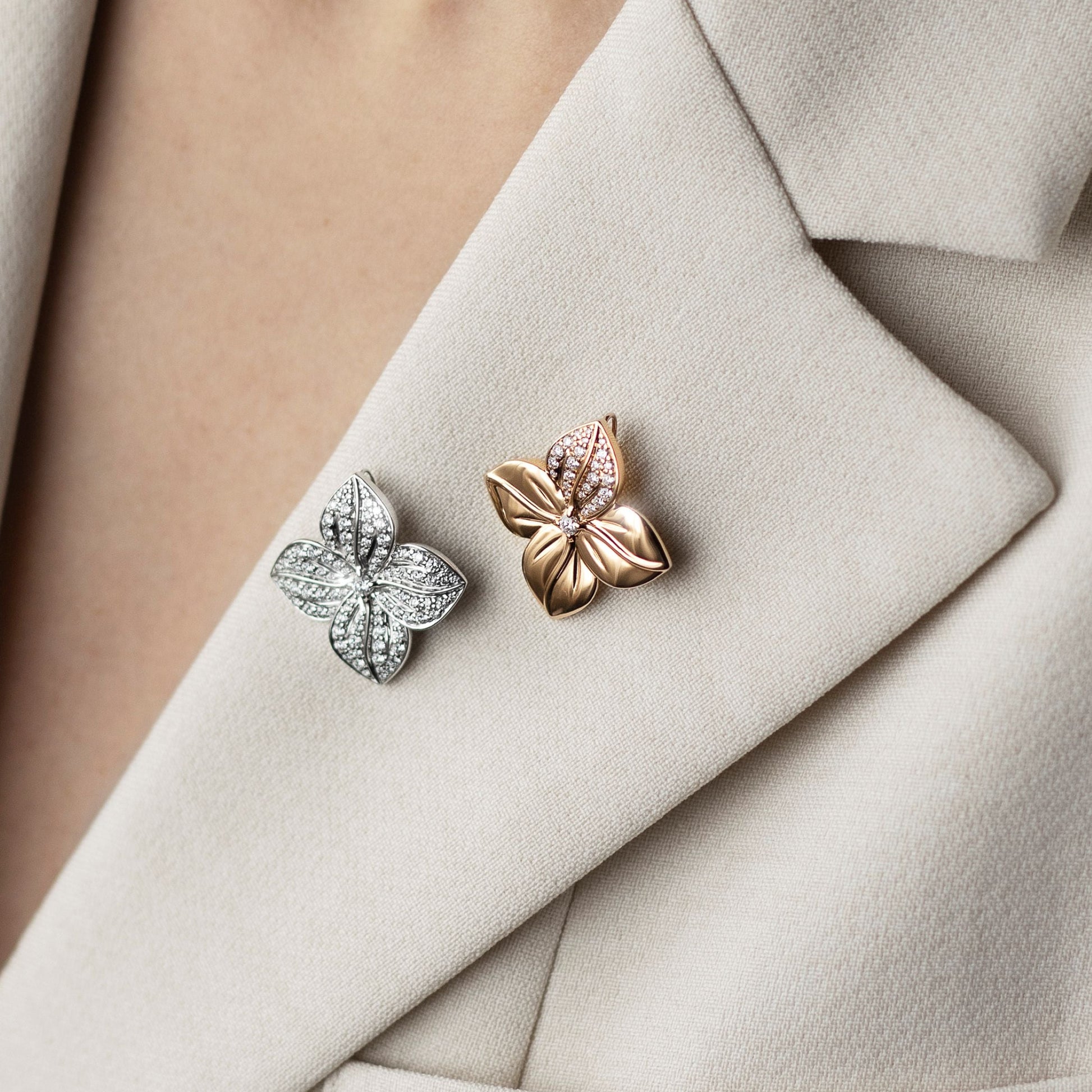 Lucky Flower Pave Diamonds Brooch in 18k Gold